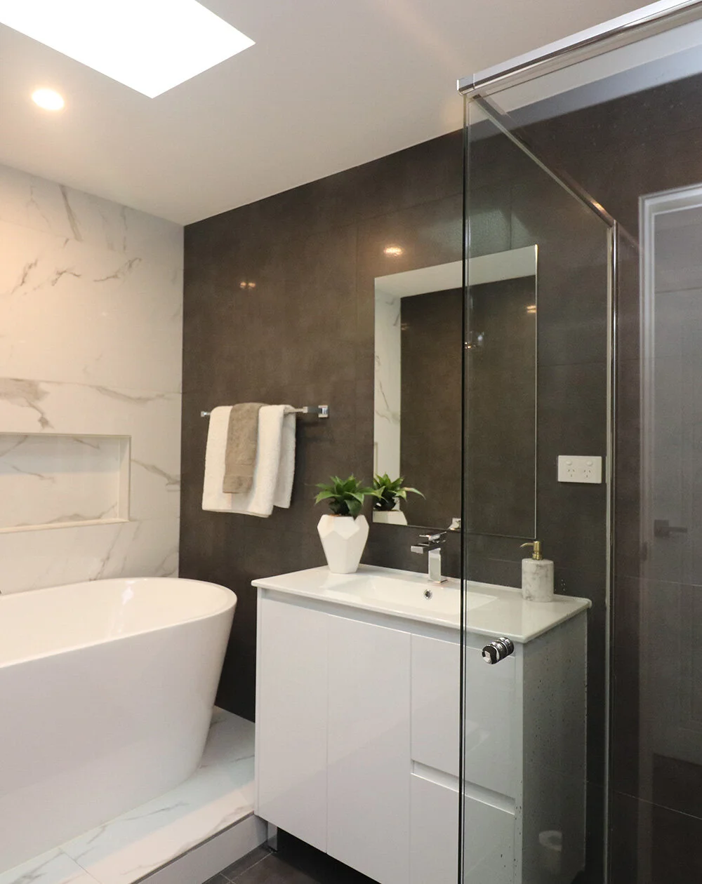 As per the client’s brief, the homes catered to the needs of a growing family, with high level finishes and ample storage. Externally, the building featured contemporary design details to suit the surrounding area’s aesthetic. Internally, each duplex was customised to suit individual tastes. Features included natural marble bench tops, decorative mosaic tiling and wall-hung vanities.